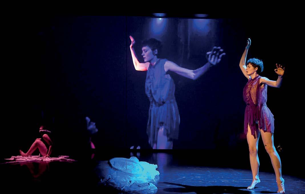 tance Johana Panenková. Vytvořila multižánrovou inscenaci, která spojuje tanec s videoprojekcí, mluveným slovem, hudbou, zvukem a práci s rekvizitami. Na jevišti se objevila autorka spolu s druhou performerkou (Barbora Matějková – studentka kombinovaného studia DAMU), ale celkový dojem doplňovala třetí osoba ve videu (Lara Hereu – performerka z Katalánska, která v roce 2023 dokončila magisterské studium DAMU). Choreografka přišla s mnoha inovativními prvky včetně využití mezinárodního znakového jazyka.