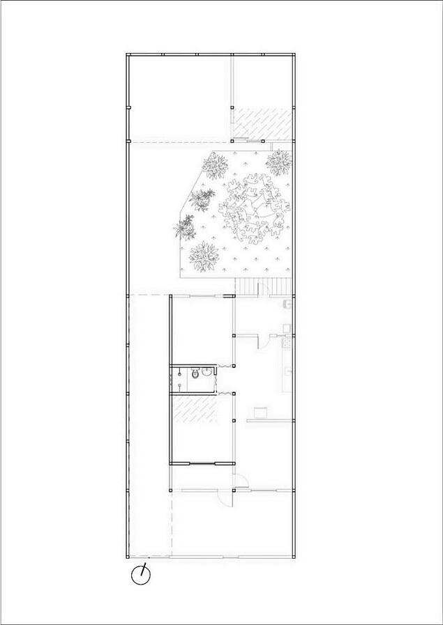 A casa e a oficina são separadas por meio de um fechamento de portas feitas de telhas translúcidas, podendo tanto ter essa separação de ambientes, quando a união dos mesmos.