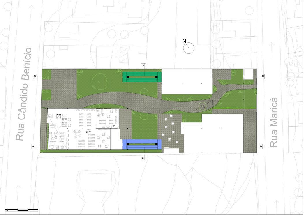 Na parte 2 do térreo, há uma extensão da biblioteca, na qual também há uma sala de leitura, no qual tem acesso de alunos por dentro da escola, na parte mais alta.