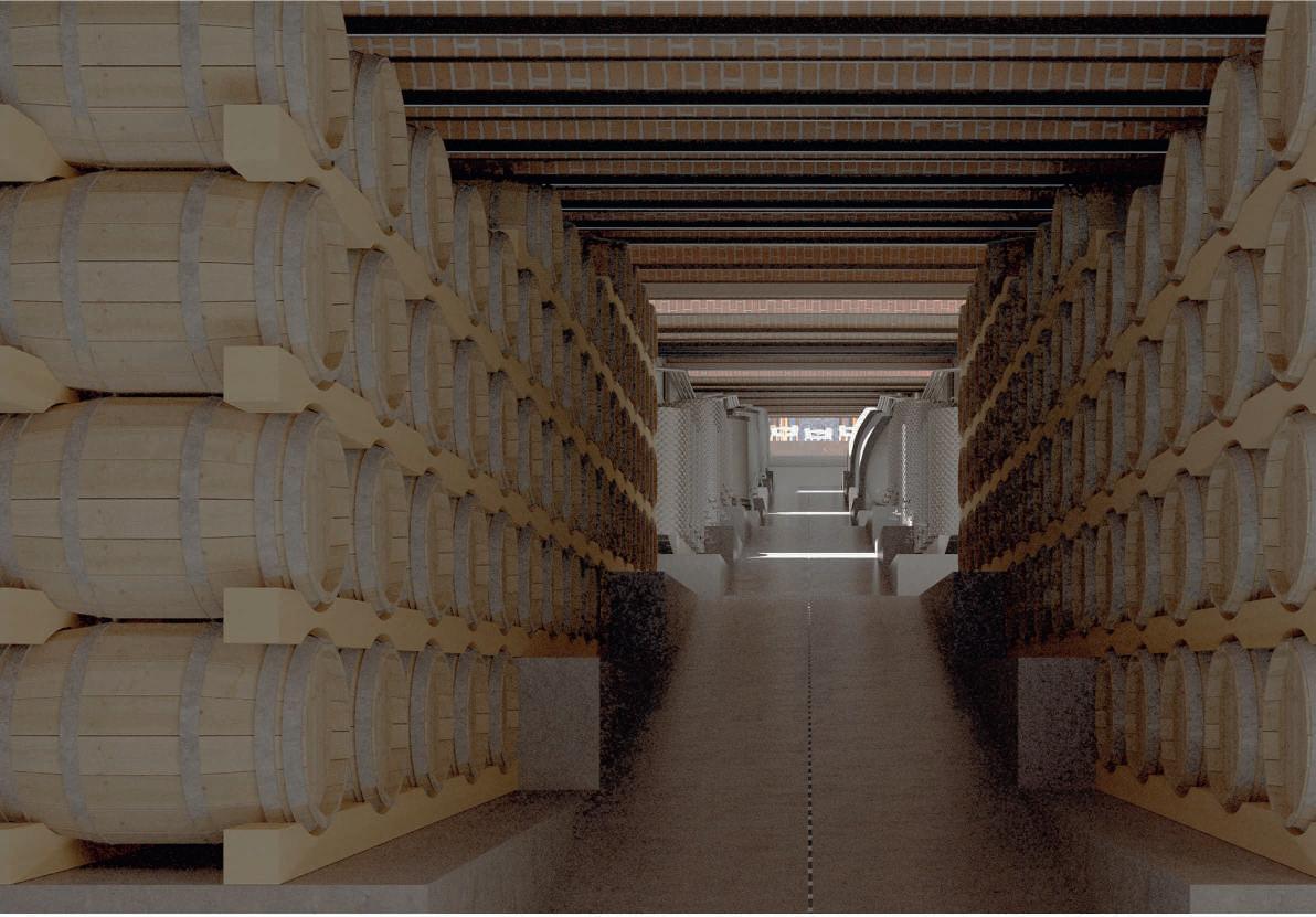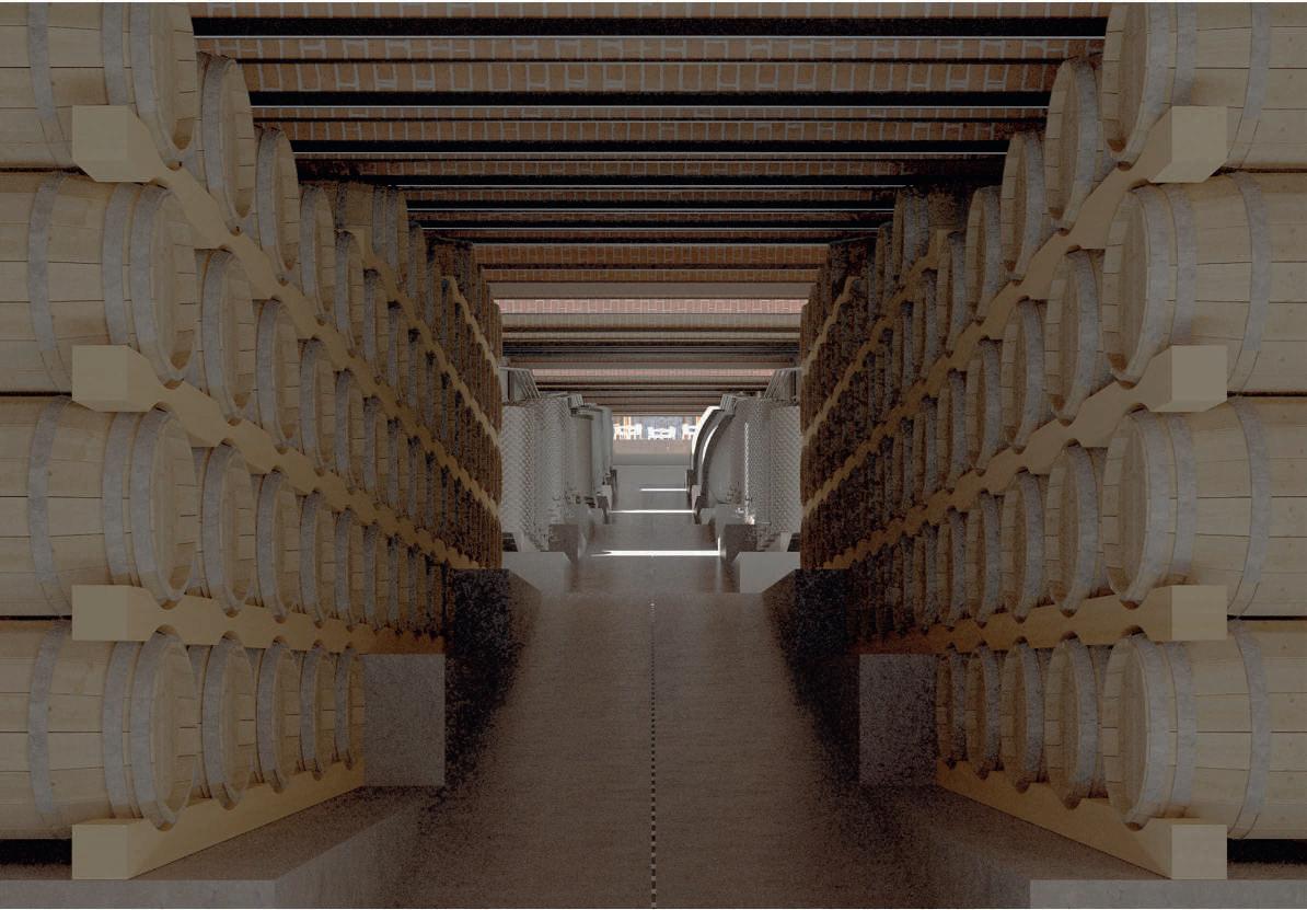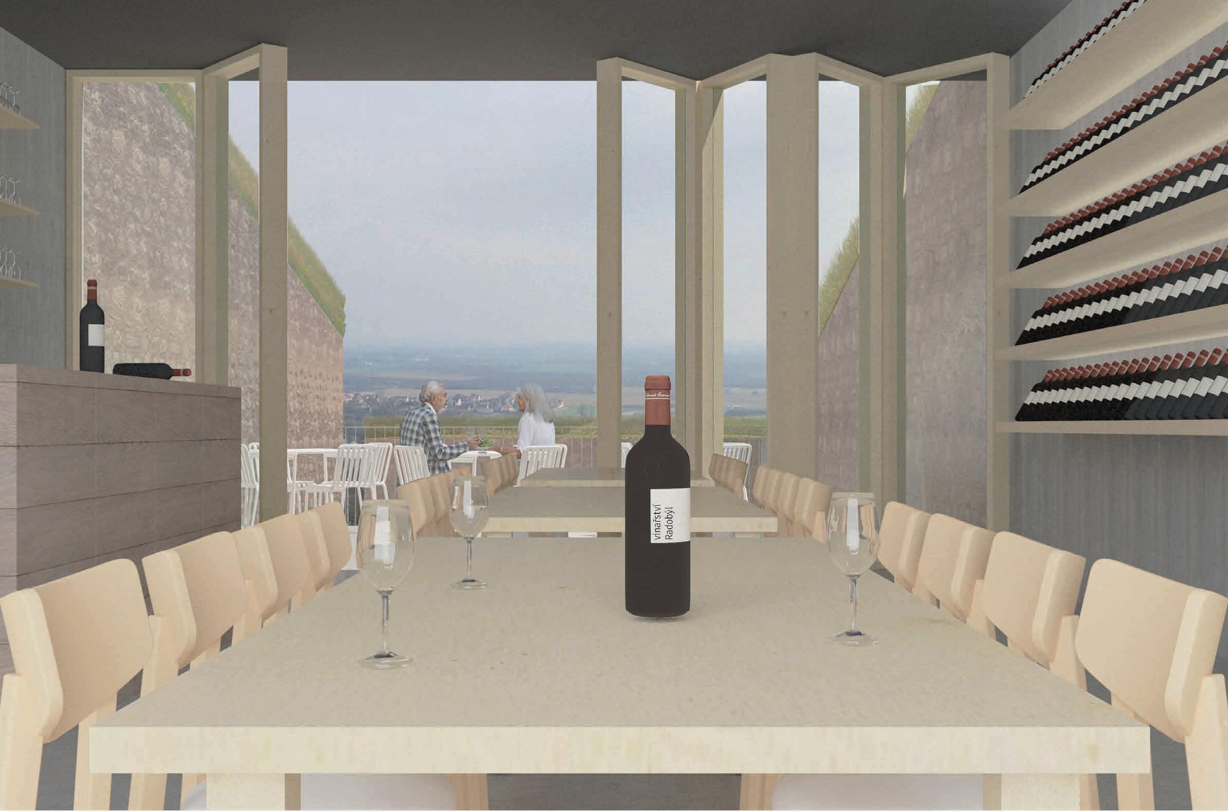The medium-sized winery is located on the Radobýl hill near Litoměřice. One long underground mass follows the shape of the hill. Where handling is needed, there are flat areas, with stable tanks and barrels that are not manipulated and are on steps on the ramp. The mass is divided into operational and residential. Step by step, production proceeds downhill. It uses the gravity process and the wine does not have to be pumped. The skylights bring daylight and air into the corridor, except for the part of the cellar that needs darkness. In the living area, the courtyards are separated according to their functions, which bring light into the room. Inspiration came from the wine cellars, the nearby underground Richard factory, and the legends of Radobyl about the secret passages.