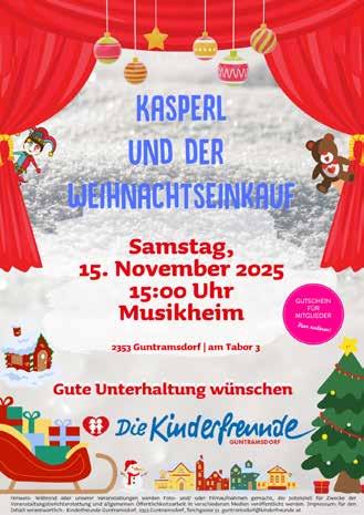 Gleichzeitig steht der November auch im Zeichen der Begegnungen: Mit dem beiliegenden Adventheft finden Sie wieder alle Termine und Veranstaltungen rund um den Advent in Guntramsdorf – von den Adventmärkten im Rathauspark, in der Pfarre NeuGuntramsdorf und in der Siedlerhalle bis hin zu stimmungsvollen Konzerten, Lesungen und Vereinsaktionen. Ein besonderes Highlight ist heuer das Adventkonzert „RONJA’s Christmas Special“ in der Pfarre Neu-Guntramsdorf, das sicher viele Herzen berühren wird.