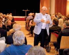 Das Musikheim, Stopp Nummer zwei, war längst bis auf den letzten Platz ausverkauft und wie zuvor in der Schule, kam der Autor sofort in Fahrt: „Ich war im vergangenen Jahr in der Steiermark auf Rehabilitation. Da habe ich zwar nebenbei eini ge ZIB-Beiträge gestaltet, aber meine Frau hat mich ermutigt, meine Gedankensplitter, die ich mir so notiert habe im Laufe der Zeit, zu einem Buch zusammenzufassen. Und so bin ich heute hier mit meinem Buch gelandet!“