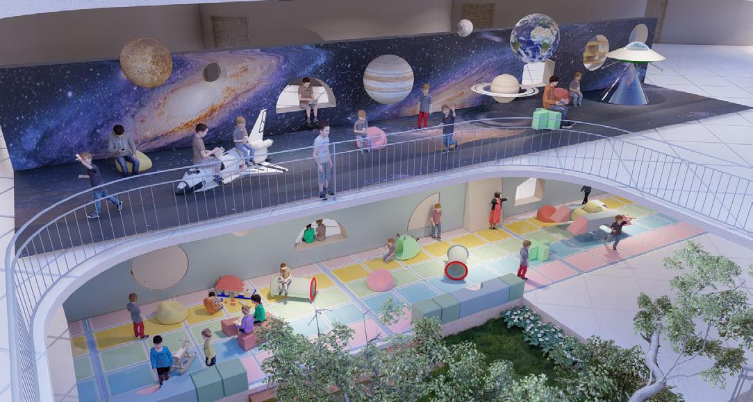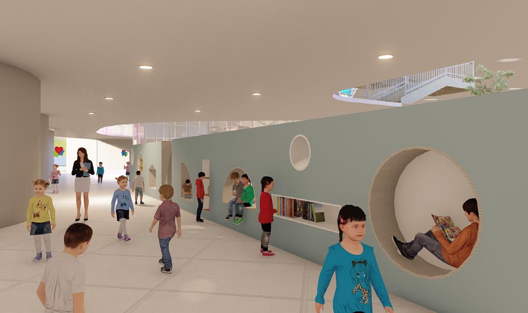 RESOURCE AREA-Corridors are divided into a specific area which is utilised for experiance learning in an open environment which is designed on different themes depending on age groups .