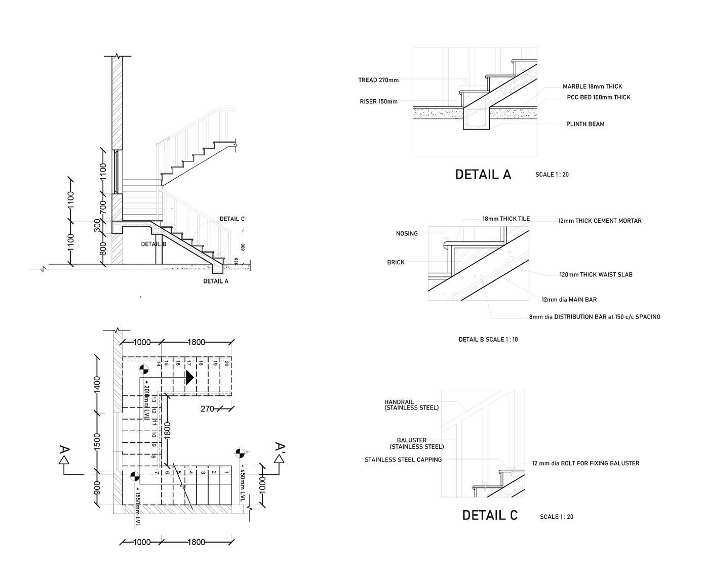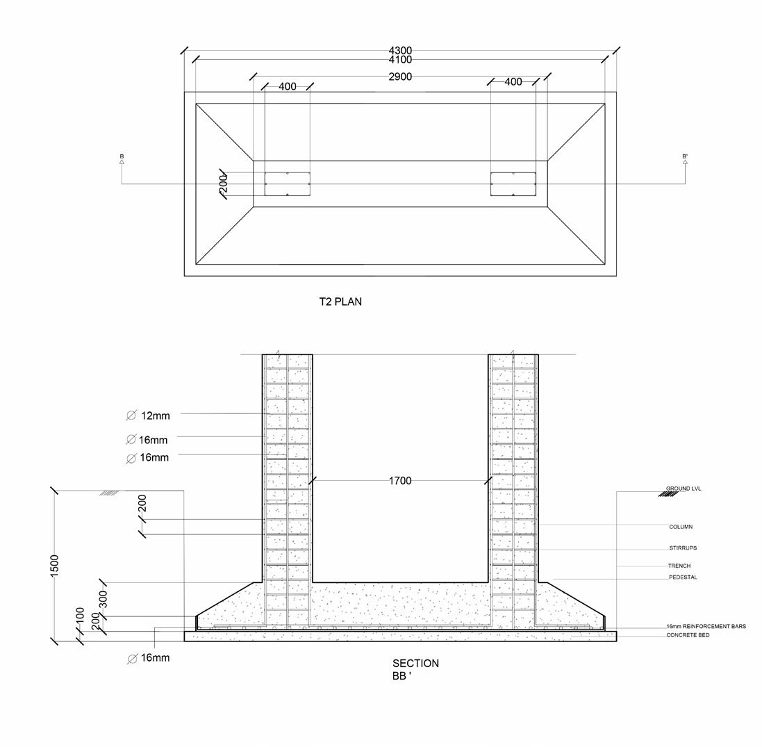 A' COLUMN STIRRUPS PEDESTAL 16mm REINFORCEMENT BARS CONCRETE BED T1 SECTION AA' GROUND LVL TRENCH SCALE 1:25 ORIENTATION SHEET NO. N GENERAL NOTES:-ALL DIMENSIONS ARE IN MM EXCEPT WHERE SPECIFIED AND ARE FINISHED DIMENSIONS. -DRAWINGS ARE NOT TO BE SCALED ,WRITTEN DIMENSIONS ARE -ALL THE STRUCTURAL MEMBERS ARE AS PER STRUCTURAL DETAILS