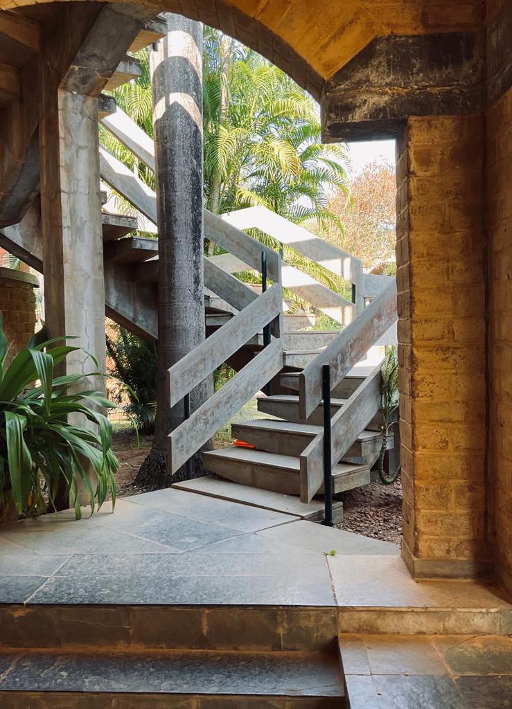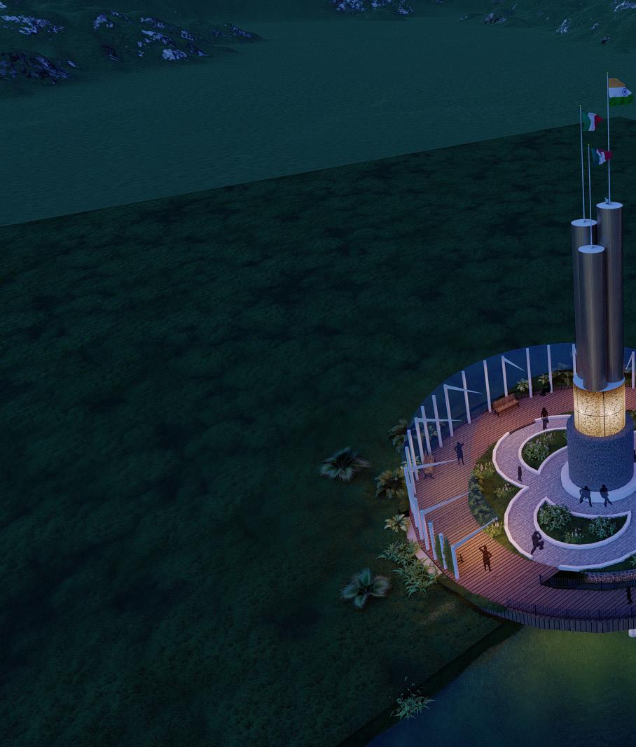 In our structure we have provided a reading space and a central structure which is made of kadappa stone and steel. The unfinished surface of the stone represents struggle and poverty faced by freedom fighters and the glossy steel structure on top represents the shining success of their struggle for freedom.