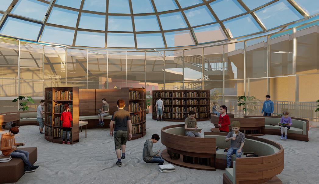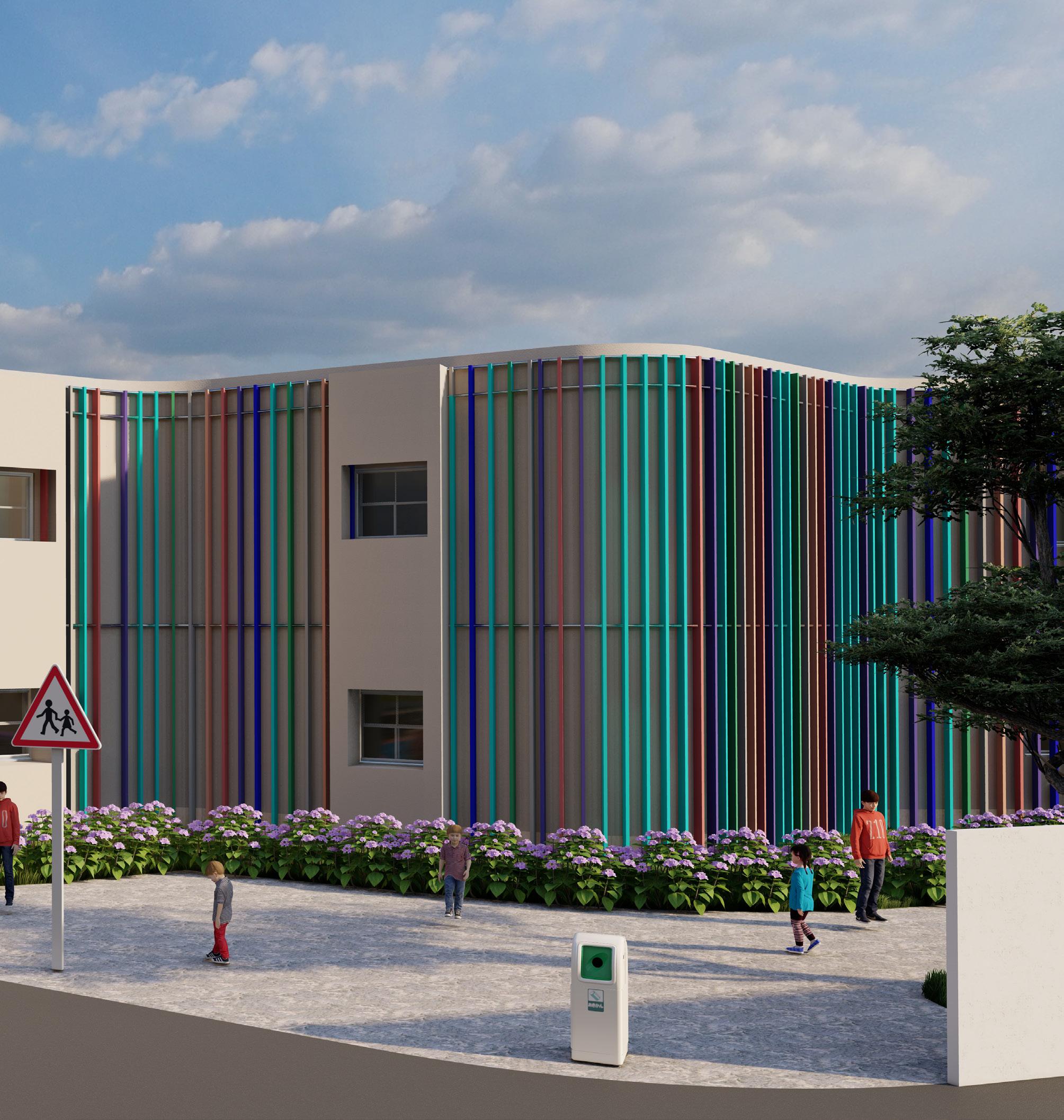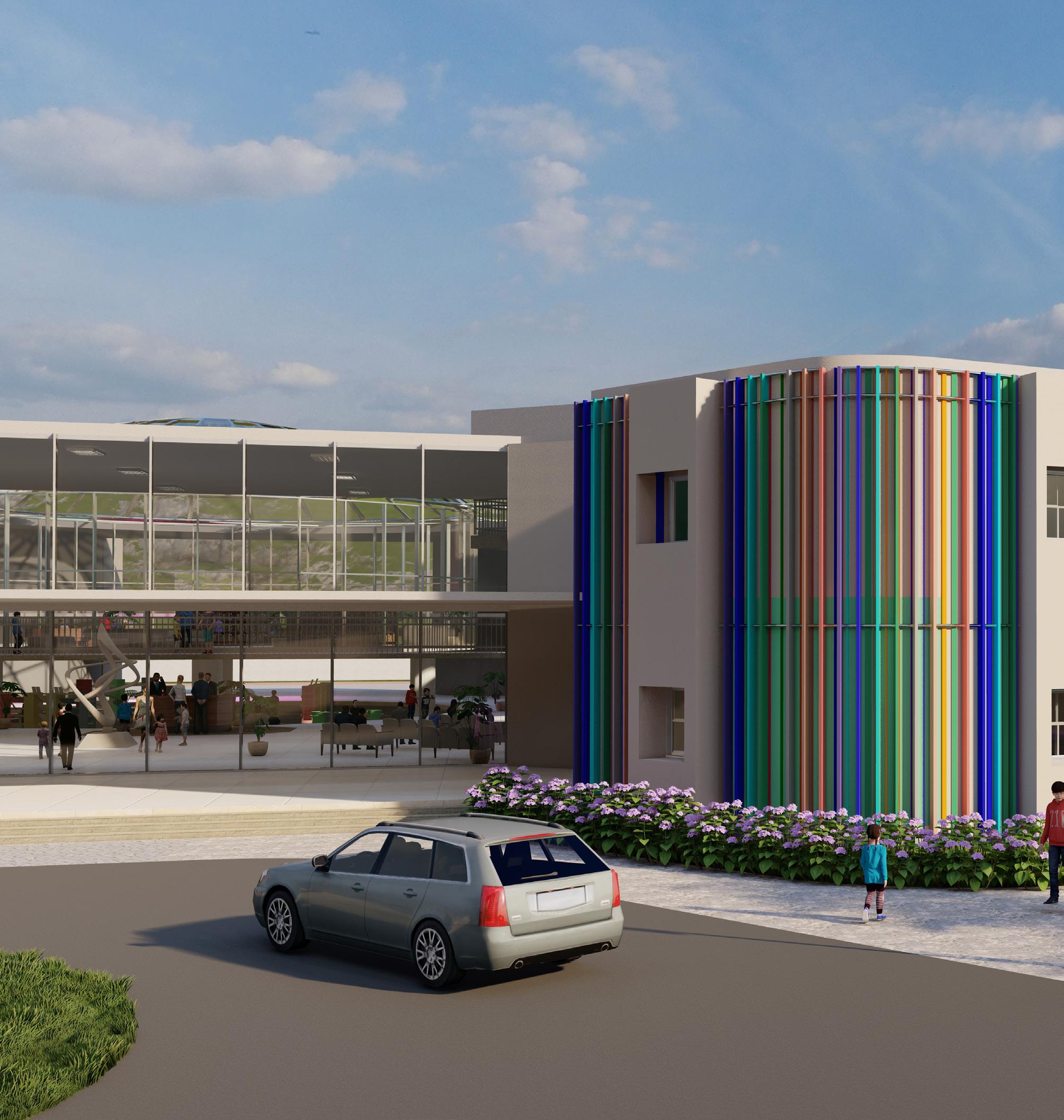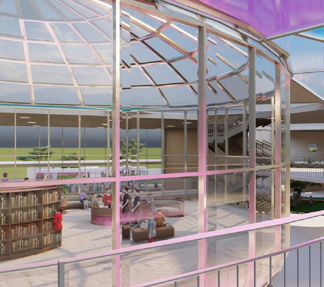GLASSES -Glasses have been used in a vareity of areas to promote visual connectiveness aswall as harnessing skylight through out the school building bringing a fresh and energetic freel.