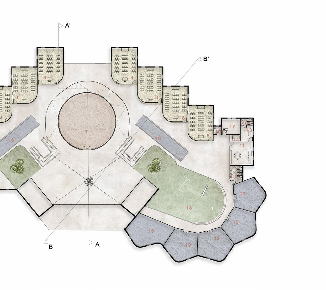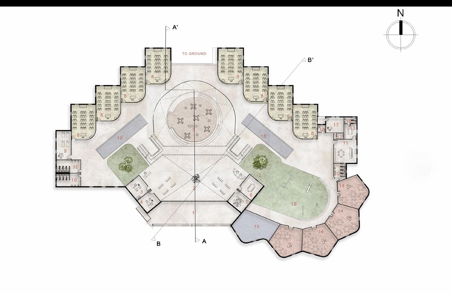25 1-Portico 2-Entrance Lobby 3-Principal Office 4-HM Office 5-Admin Office 6-Conference Room 7-Library 8-Classroom 9-Medical Room 10-Toilets 11-Staff Room 12-Sports Room 13-Staff Pantry 14-KG Classroom 15-Multipurpose Room 16-Resource Area 17-Lift 18-KG Ground 19-Activity Room 20-SCI LAB 21-NON TEACHING STAFF