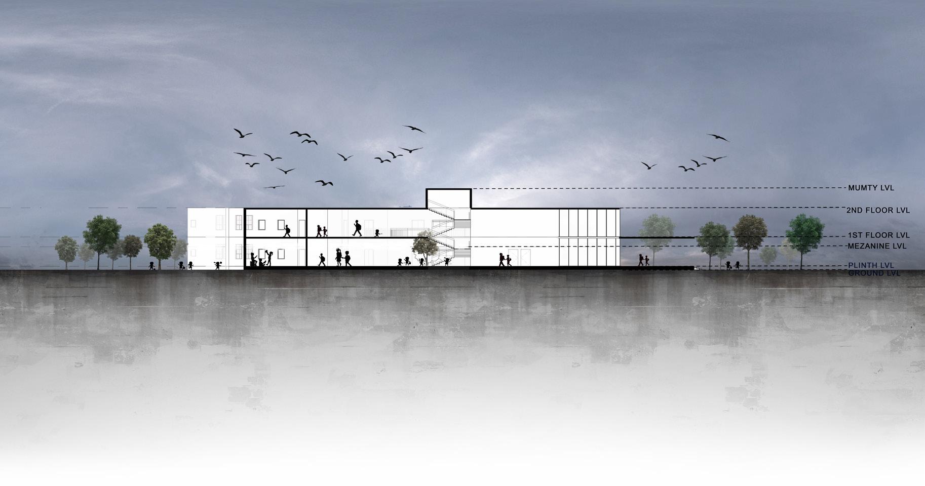 To design a primary school for children below 12 years. I focused on making the shool a more enjoyable place for chi,dren by bringing open learning envirnoment ,experiance learning, interactive corridors etc. Also gave importance to climate and natural ventillation while designing.