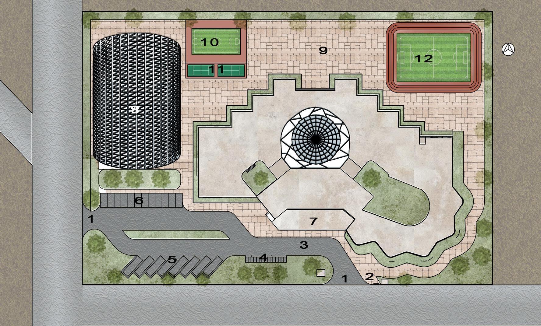 PARKING 6- 4W PARKING 7-SCHOOL 8-ASSEMBLY AREA 9-GROUND 10-KIDS BASKETBALL COURT 11-BATMINTON COURTS 12-FOOTBALL COURT