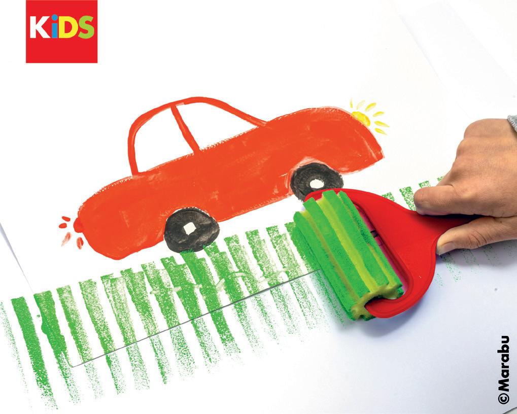 Mielikuvituksen avuksi on olemassa myös erilaisia vaahtomuovisia leimasimia ja hauskoja rullia, joten taideteoksen tekemiseen ei vaadita vanhemmiltakaan piirustustaitoja!
