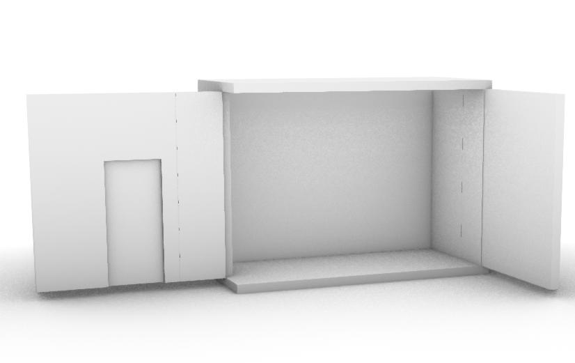 In obtaining a lease for the business incubator, the vendor receives a kit that consists of the operable shed and a series of shelves that have dowels that fit into the built in peg board. Additionally, an ADA compliant ramp is stored inside and can be nestled into a wing of the open wall to ensure that the shed can be accessible to all who wish to engage. To support the structural weight of the walls that swing open, a set of four wall supports are included to be placed under the walls when deployed.