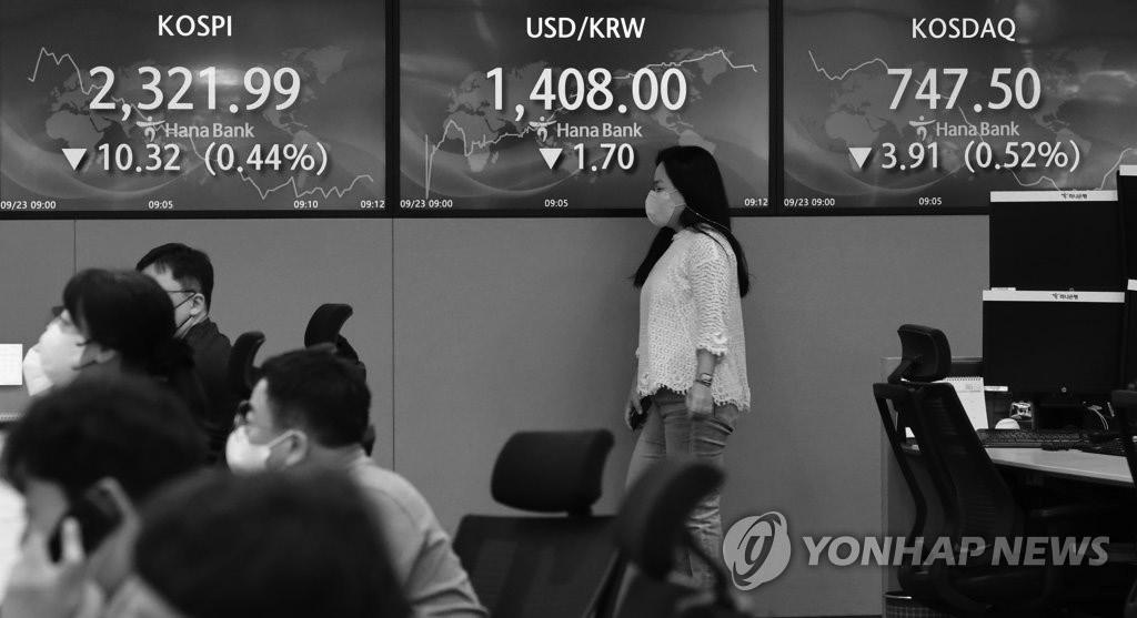 코스피, 외인·기관 매도에 2,320대 후퇴… 환율 1,410원 '턱밑'
