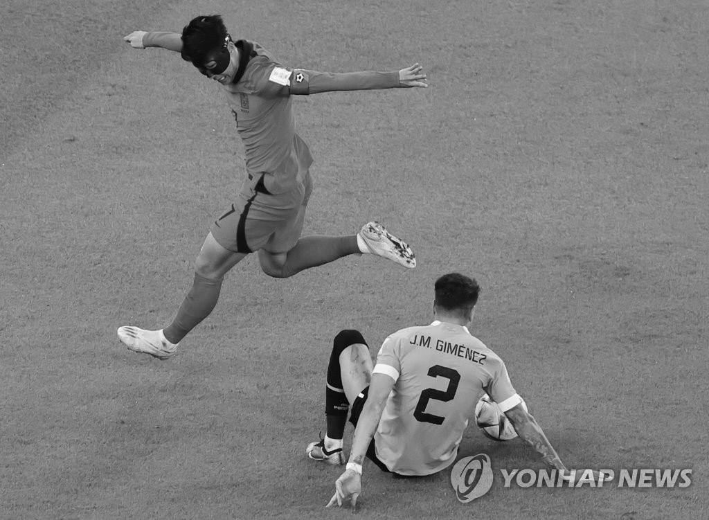 Friday Nov 25, 2022 연예 / 스포츠 소식 (알라이얀=연합뉴스) 장보인 기자 = 득점 은 나오지 않았지만, 마스크를 쓴 손흥민(30· 토트넘)의 투혼은 빛났다. 손흥민은 24일 카타르 알라이얀의 에듀 케이션 시티 스타디움에서 열린 우루과이와 2022 카타르 월드컵 조별리그 H조 1차전에 서 풀타임을 뛰었다. 안와골절로 수술을 받은 그는 얼굴 보호 를 위한 검은색 보호대를 착용한 채 그라운 드에 올랐다. 한국 팬들의 뜨거운 환호를 받으며 몸을 푼 손흥민은 마스크를 고쳐 쓰고 경기에 나 섰다. 손흥민은 마스크에 어느 정도 적응한 듯 했다. 전반 26분 역습 과정에서 왼쪽 측면으로 쇄도한 그는 상대 수비 두 명을 연달아 제치 고 페널티지역 왼쪽 모서리에서 오른발로 공 을 감아 차는 등 번뜩이는 움직임을 보였다. 후반 11분에는 우루과이 마르틴 카세레스 에게 발 뒤쪽을 밟혀 쓰러져 지켜보던 이들 을 숨죽이게 했다. 신발이 벗겨지고 양말이 찢어질