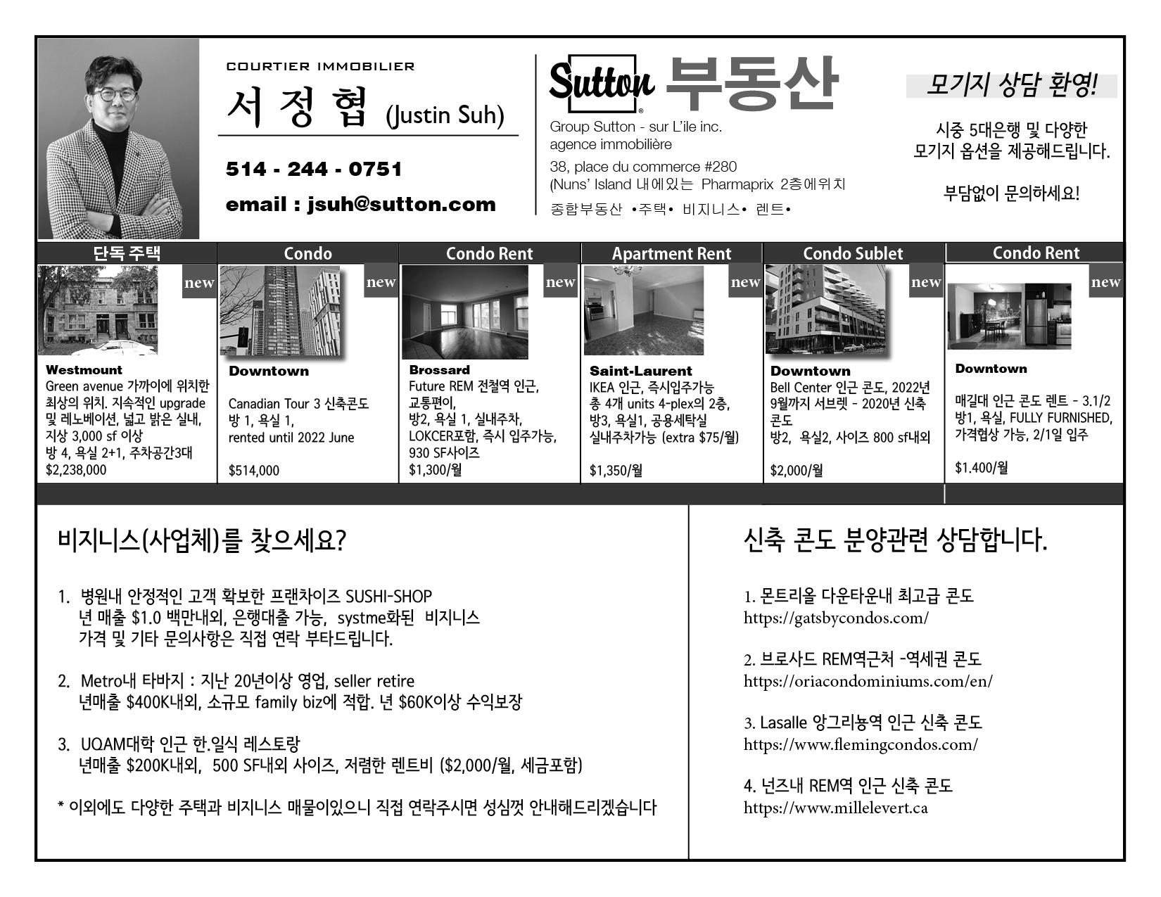 Friday Aug 18, 2023 연예 / 스포츠 소식 • 스도쿠 몬트리올 (514)796-5533 hancafriend@gmail.com 3333 Boul. Cavendish, suite 300, Montreal, QC H4B 2M5