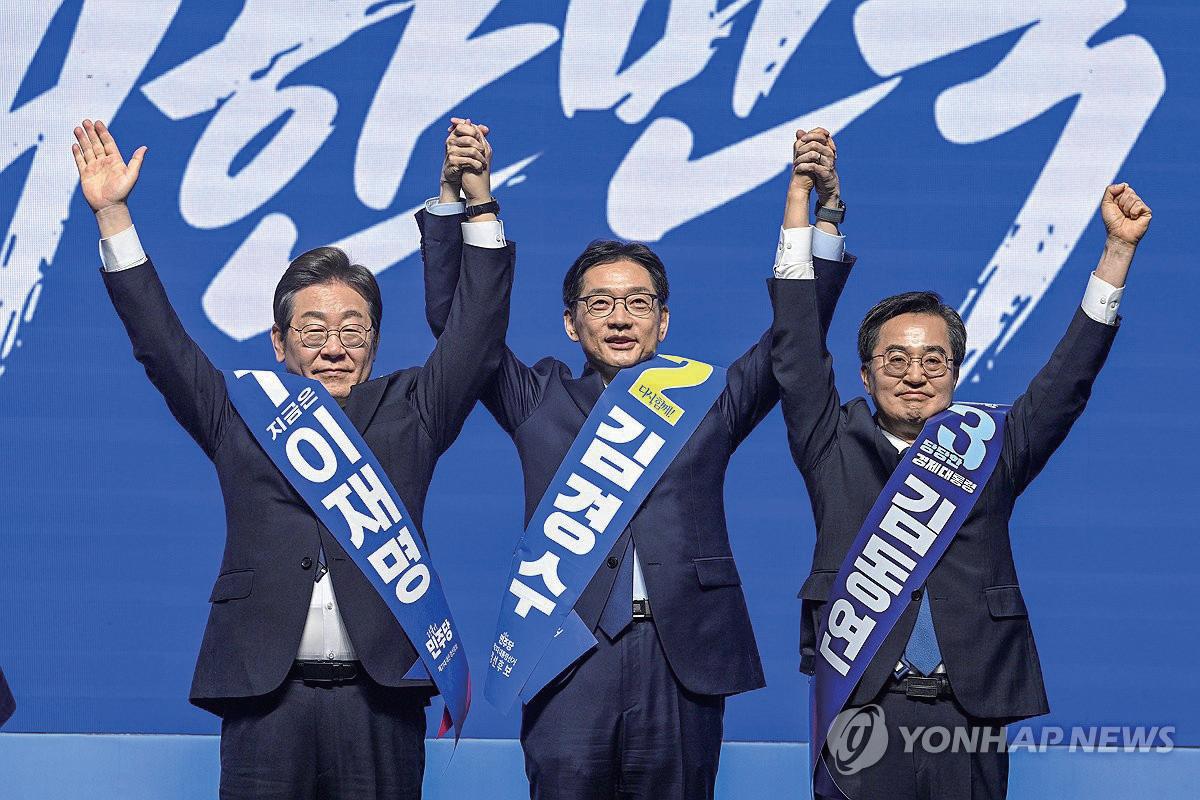 앞선 영남과 충청권 투표 결과까지 합 한 현재까지의 누적 득표율은 이 후보가 89.04%, 김동연 후보가 6.54%, 김경수 후보 가 4.42%다.
