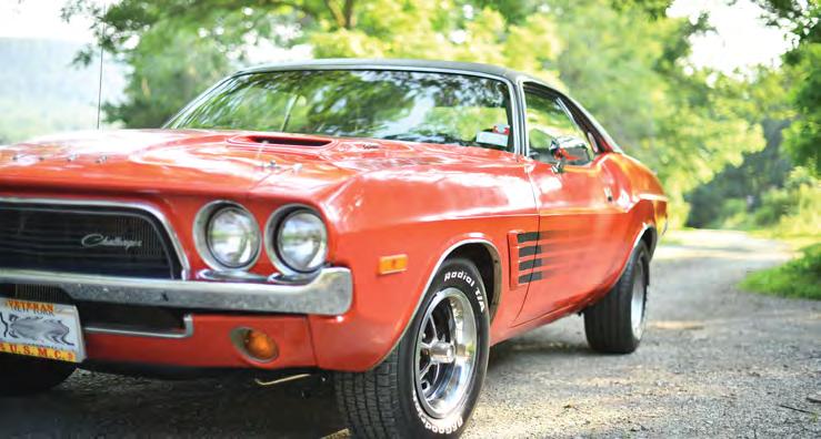 The Challenger is in pristine condition. The only things not original on it now are the carburetor and the radiator. “I do have the original parts for the carburetor,” Bill said. “I had the original rebuilt, but when I put it in, it didn’t work.” He decided to buy another because by that point he “just wanted to get the car on the road. . . At some point I’ll take the original apart and figure it out,” he said. He also slightly modified the engine to give it more power. “It goes faster now,” he said.