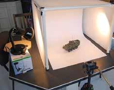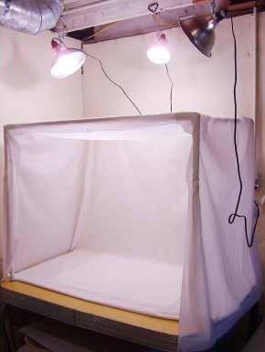 Si tienes más espacio en tu casa puedes hacer una caja de luz que se asemeje un poco más a un pequeño plató fotográfico. En este caso se utilizan telas para tamizar la luz de los focos sobre el objeto y conseguir así una fotografía bien iluminada sin sombras duras.