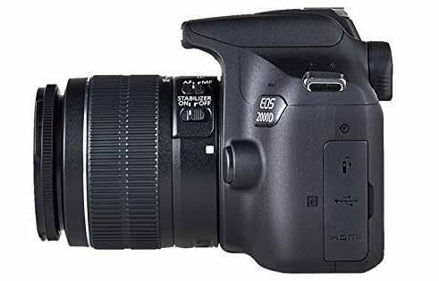 El cuerpo de la EOS 2000D está fabricado en plástico. Pero, a diferencia de la 4000D / Rebel T100, la montura de la 2000D es metálica.