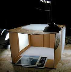 Otra idea de cómo hacer una caja de luz, en este caso con una estructura a base de tubos de desagüe. Observa en este caso la cartulina blanca curvada a modo de fondo del objeto para generar en la foto un fondo uniforme.
