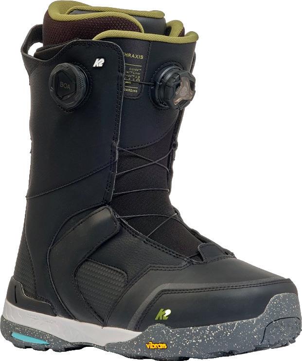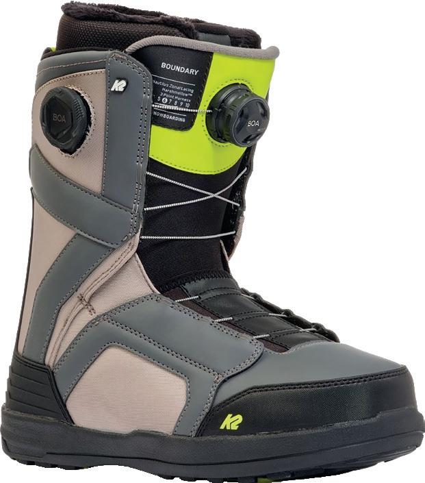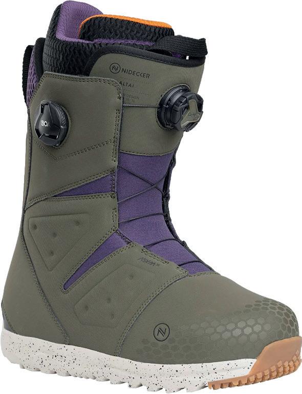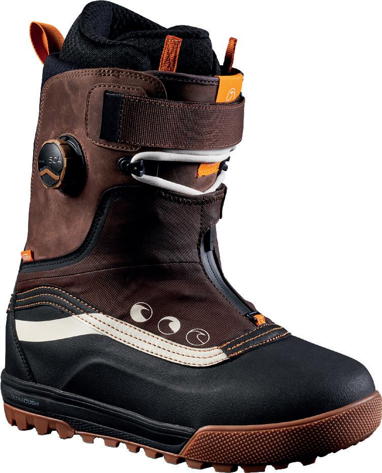 dello scarpone. La struttura Popcush a doppia densità include un’avanzata forma anatomica stampata in 3D, piccoli fori per garantire il flusso d’aria, tessuto superiore traspirante in nylex e un design anti-fatica. La suola V2 Waffle Pro è progettata per garantire prestazioni ottimali sia sullo snowboard sia senza la tavola ai piedi. La flessibilità naturale senza compromessi