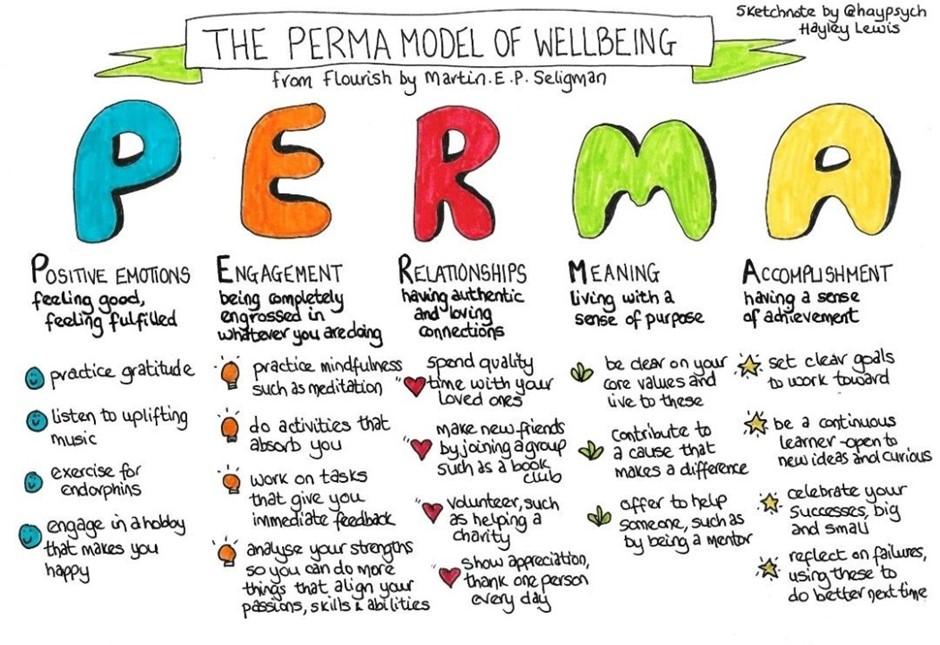 The PERMA model is a framework for happiness and well-being based on Positive Psychology through five simple elements. Dr Martin Seligman, the founder of this model, ensures that given time and attention, these elements can lead to a happier, more engaged and fulfilling life.