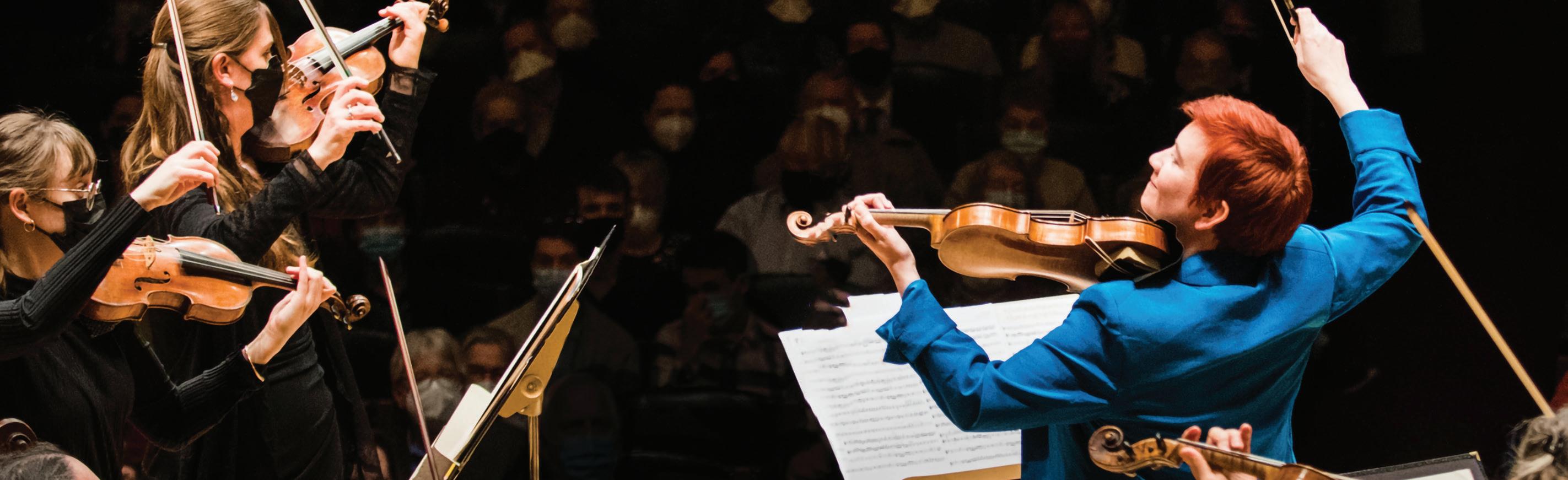 The 2021-22 Season began with concertmaster Aisslinn Nosky directing and serving as soloist for Vivaldi’s The Four Seasons and leading the live premiere of a commissioned work by Jonathan Woody. Conductors Laurence Equilbey (Beethoven and Louise Farrenc), Raphaël Pichon (Bach Christmas), and Václav Luks (Beethoven and Joseph Bologne) made their H+H debuts. Aisslinn Nosky and Associate Conductor and Principal Keyboard Ian Watson co-led an All-Bach program of Brandenburg Concertos and Orchestral Suite No. 2 at NEC’s Jordan Hall in February.