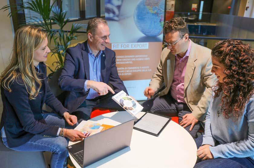 Fragen und der richtigen Vorgehensweise beim Einstieg in den Export dient. Des Weiteren informiert, berät und unterstützt der Service mit technischer Außenhandelsberatung, einem breiten Informationsangebot und mit einer gezielten Weiterbildung in Zusammenarbeit mit dem WIFI. Die Handelskammer Bozen ist bei Firmendatenbanken abonniert und kann somit kostenpflichtige Firmenauskünfte und Adresslisten für das In- und Ausland zur Verfügung stellen. Zudem ermöglicht die neue OnlinePlattform „Südtirol exportiert“ eine kostenlose Erstellung des eigenen Export-Firmenprofils, um international mehr Sichtbarkeit und Kontakte zu potentiellen Geschäftspartnern zu erhalten.