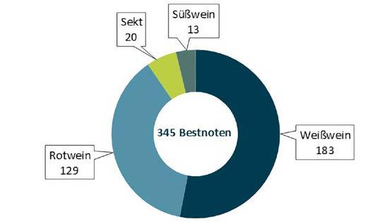 Die Topnoten verteilen sich auf 209 Weine von 78 Produzenten. Dazu decken die ausgezeichneten Weine eine breite Palette von Rebsorten ab. 183 der 345 Bestnoten gingen an Weißweine, damit stellen sie 53 Prozent der ausgezeichne-