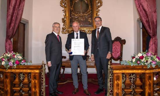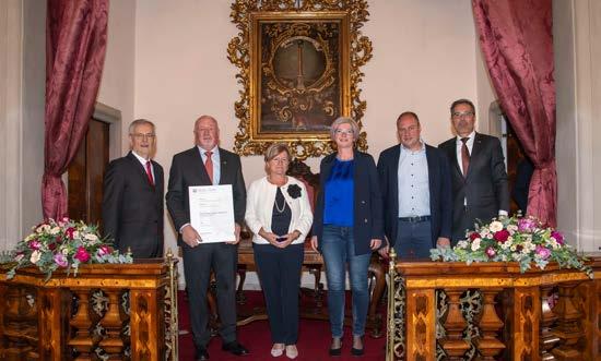 Im festlichen Rahmen des Merkantilgebäudes überreichten Handelskammerpräsident Michl Ebner sowie Landeshauptmann Arno Kompatscher Goldmedaillen und Diplome an insgesamt 15 traditionsreiche Südtiroler Unternehmen. Die prämierten Betriebe weisen zwischen 50 und 250 Jahre Tätigkeit auf.