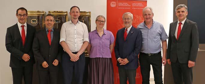 Am zweiten Abend bei der Kaffeerösterei Alps Coffee anwesend waren Alfred Aberer, Generalsekretär der Handelskammer Bozen; Urban Perkmann, Leiter des Bereichs Studien im WIFO; Stefan Schreyögg, Mitinhaber von Alps Coffee; Manuela Grünangerl, Professorin an der Paris-Lodron-Universität Salzburg; Handelskammerpräsident Michl Ebner; Peter Schreyögg, Mitinhaber von Alps Coffee und WIFO-Direktor Georg Lun (v.l.n.r.). In Rabland/Partschins drehte sich alles um die Frage, wie das Potential erfahrener Beschäftigter im Unternehmen bestmöglich genutzt werden kann.