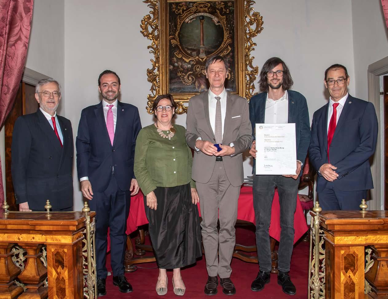 Nell’immagine da sinistra a destra: Il Direttore dell’IRE Georg Lun con la vincitrice e i vincitori Juan Pablo Tassier Calvo, Erica Dal Farra e Felix Alber.