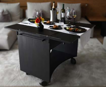 L’ultima grande sfida, che d’altronde abbiamo dovuto affrontare tutti, è stata la pandemia da Coronavirus. Ripensando a quel periodo fatto di restrizioni, gli ospiti non potevano accedere liberamente alle sale ristorazione degli hotel. È proprio in questa circostanza che è nato il nostro primo carrello: esclusivo e multifunzionale, per il servizio direttamente in camera quando l’ospite non può recarsi nella sala da pranzo o ha difficoltà a far-