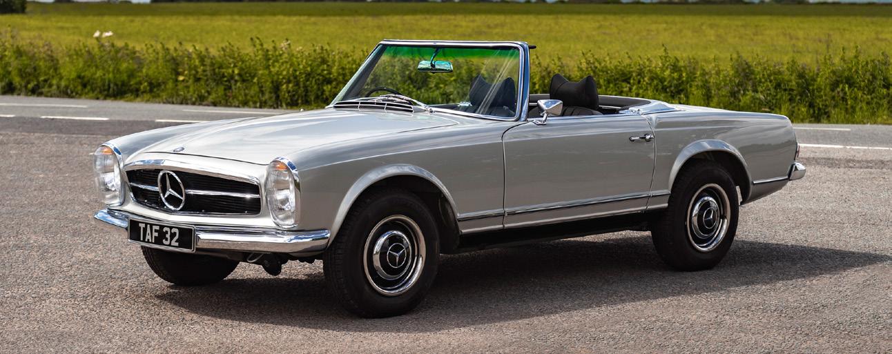 The front cover car – a decidedly rare, UK-suppled 1967 Mercedes-Benz 250SL – is coming to market for the first time in fifty years and has benefited from a 1,000 hour plus bare metal restoration. At the other end of the spectrum condition-wise is a 1965 Morris Mini MK1 Rally car that has not been driven in anger since retiring from the 1973 Tour of Mull! The Mini is among thirty-one vehicles entered from the late David Lucas’s estate. A motor engineer by profession and a true petrolhead, Mr Lucas amassed a notably diverse collection focused on British cars from the 1920s through to the 1980s plus half a dozen tractors.