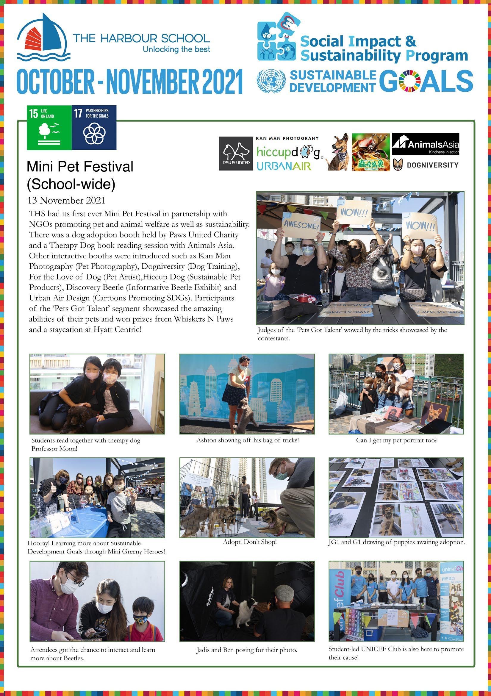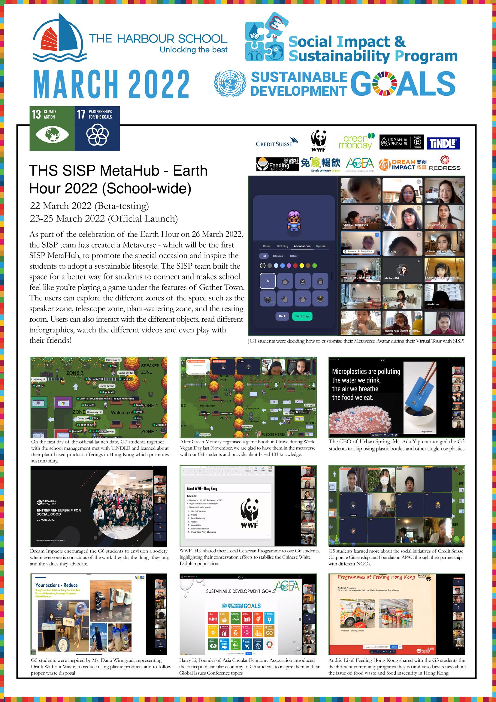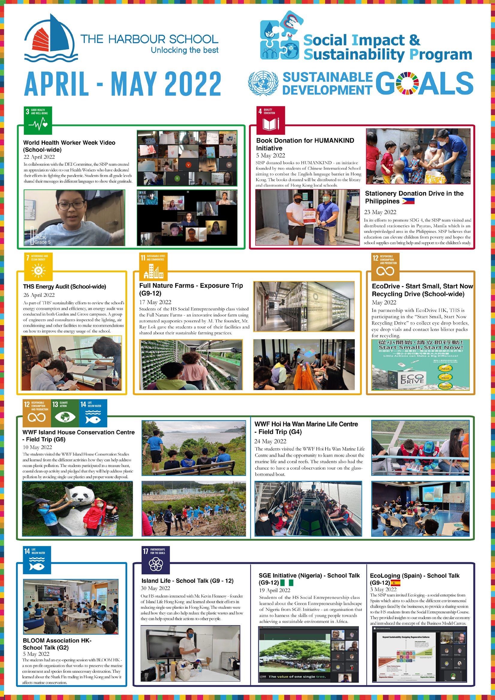 Building on Project Hope initiative as supported by the school community, THS successfully launched the Social Impact and Sustainability Program (SISP) since August 2021, demonstrating the school’s journey of its humble start of Project Hope, later grew into a school-wide movement of community service and finally evolved into SISP - a full-blown institutionalised project that introduce young students to SDGs. SISP continues Project
