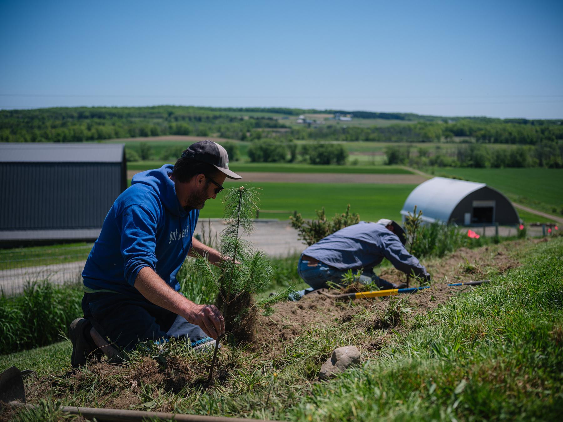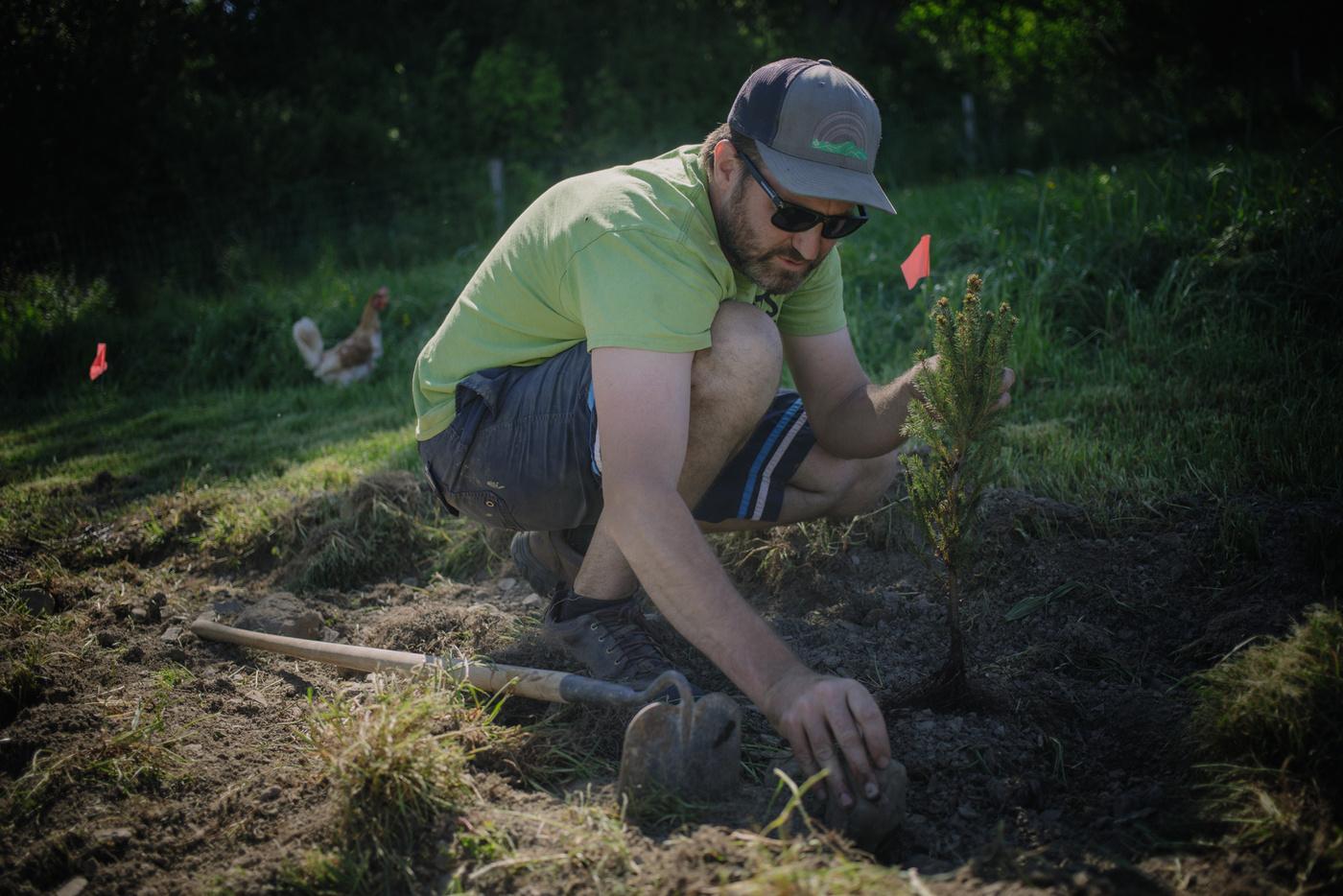 In the idyllic Finger Lakes region, two Handsome Brook Farms growers, Laurence and Luke, embarked on a collaborative treeplanting project that was mutually beneficial Laurence, with his horticultural expertise and small organic nursery, provided Thuja Green Giant evergreen trees to Luke. The trees were planted around Luke's chicken barn, envisioning a windbreak that would protect the barn from the region's relentless winds As seasons pass, the Thuja Green Giants, in addition to a strategic selection of other hardwood trees, will flourish into a protective shield around Luke's barn.