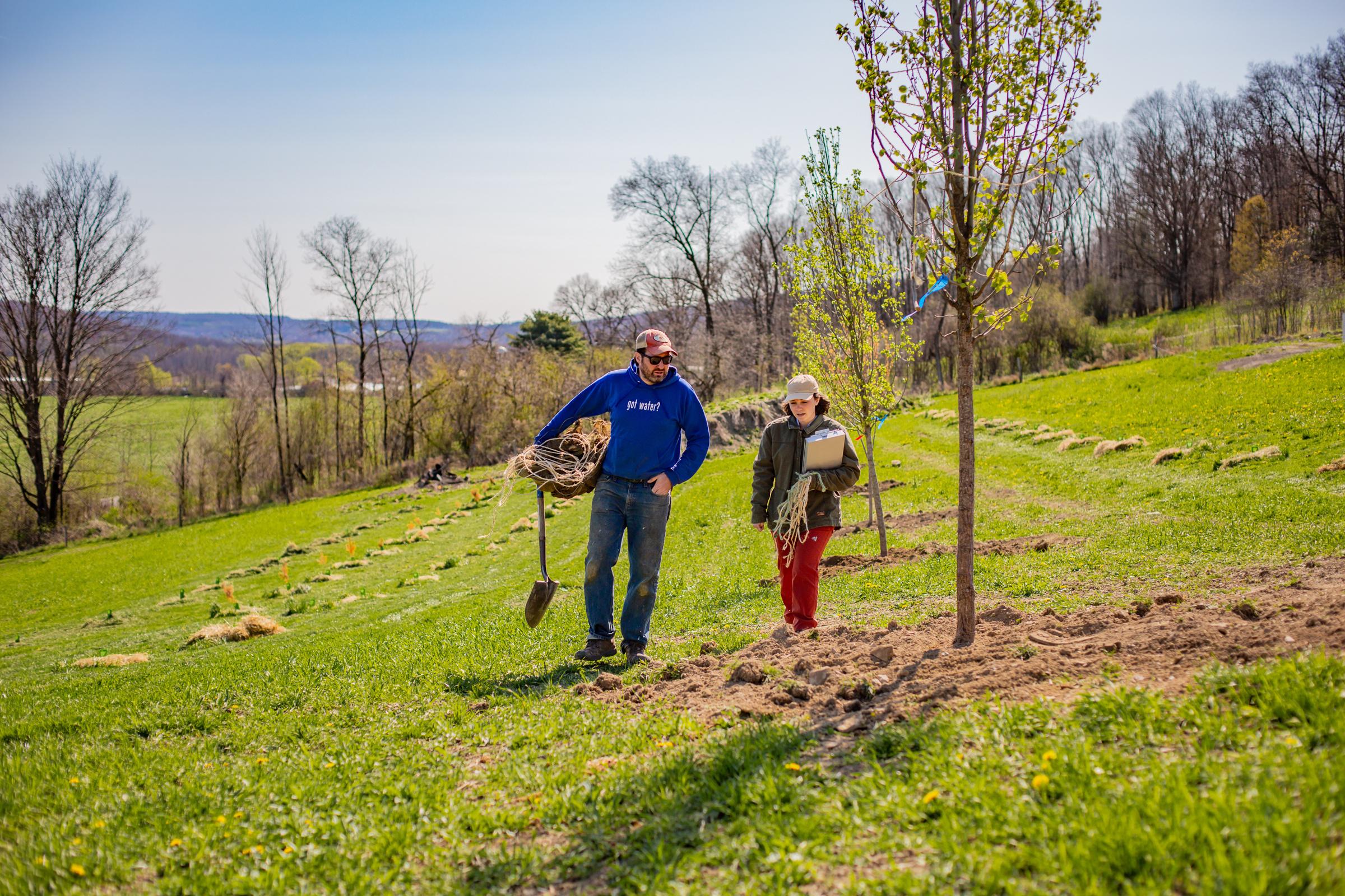 The 2023 Cost-Share program comprised various projects, including a tree-planting pilot in collaboration with Wellspring Forest Farm. Through this pilot, HBF growers in New York collaborated with HBF’s Director of Sustainability and Communications and Wellspring Forest Farm to plant trees on their pasture with the ultimate goals of designing resilient hen habitats and contributing to the enhancement of local ecosystems.