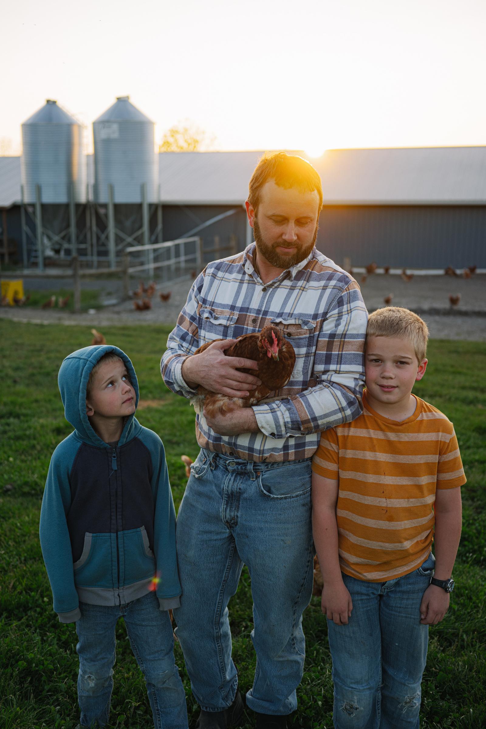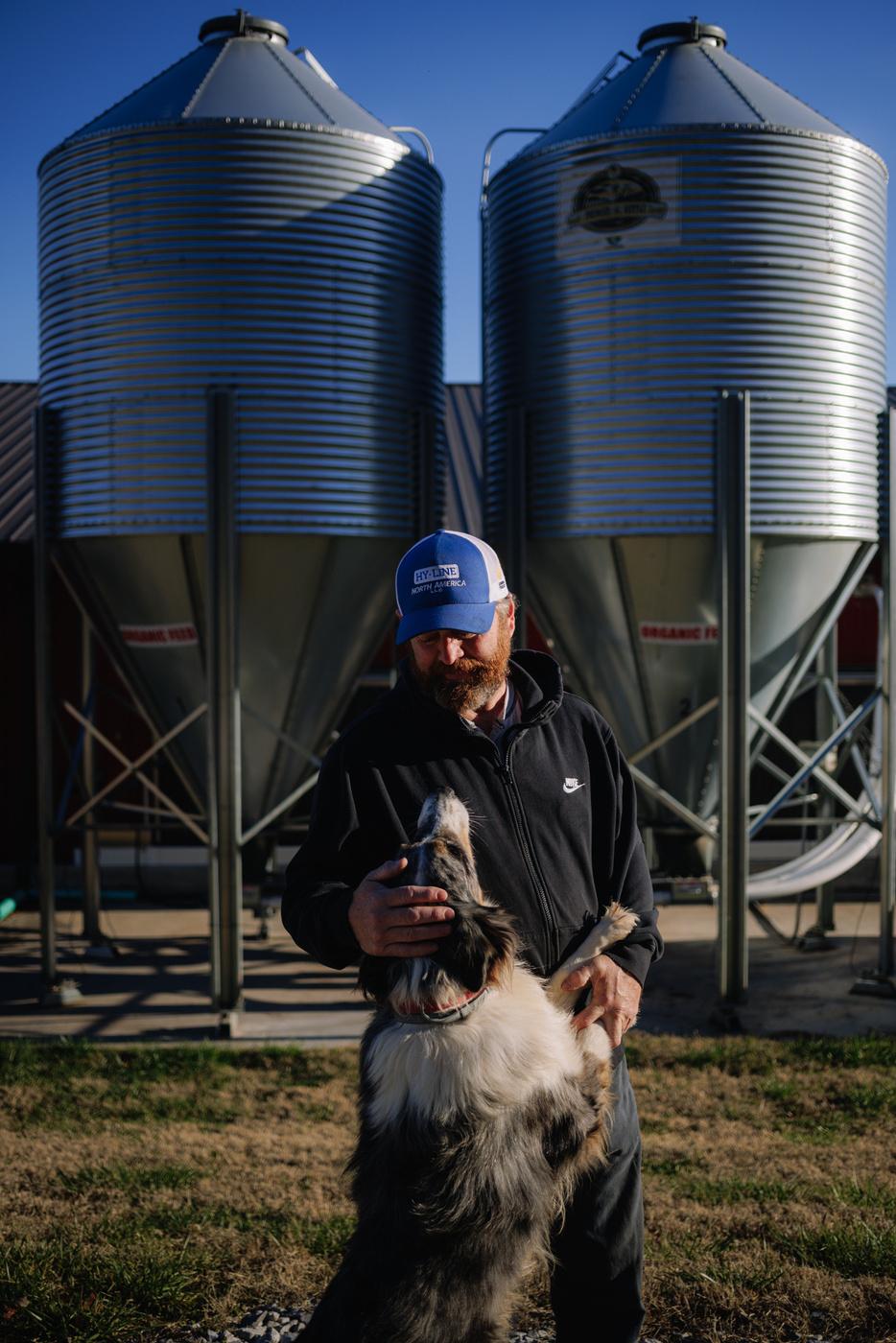 Jason has seen the dairy industry diminish over generations, struggling to sustain a small herd amid volatile milk prices Seeking stability, he diversified his farm with cash crops, but market downturns left him financially strained In 2016, a tract of land near his homestead sparked hope a prospect for a chicken barn. Jason seized the chance, venturing into raising hens for Handsome Brook Farms. The shift offered better pay and stability compared to dairy farming. Despite the challenges of acclimating new hens to their environment, Jason's commitment to sustainable farming shines through. He has converted 45 conventional acres into organic through persistent land management. Recently welcoming his third child, Jason carries on his family’s farming tradition in the same house where he was born.