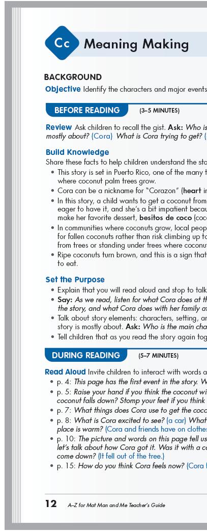 Meaning Making lessons target specific story elements, helping students practice recall of the text while strengthening connections between letters, words, and ideas.