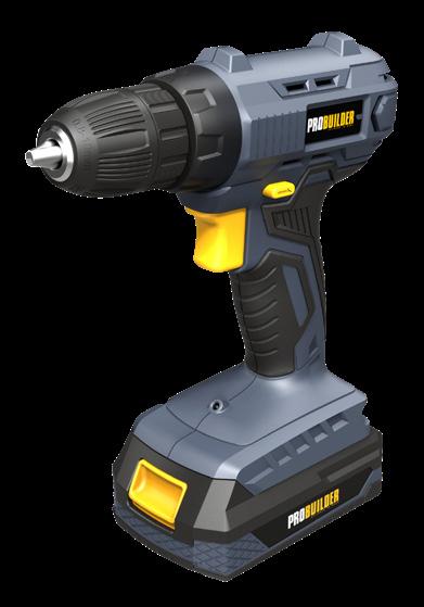 Akutrell Probuilder 20V + tarvikud 20V, 1,3 Ah Li-ion aku, 3h laadija, padrun 10mm, 18+1 momenti, maks. 25 Nm, pöördeid 0-650 p/min, 32 otsikut, LED valgus 56173