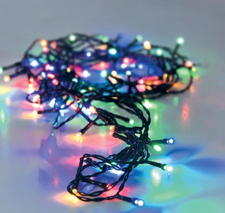 LED valgusketid 8 funktsiooniga. IP44 sise- ja välistingimustesse. Tulede kaugus üksteisest ca. 7,5cm. Taimer 8h sees, 16 väljas. Värvid: ekstra soe valge, külm valge, multi, sinine, punane 107-810463, 107-814539, 107-810470, 107-810500