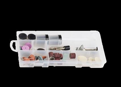 3,6V Li-Ion aku, 3 kiirust: 5000-15000 p/ min, 3mm padrun, laadimine 2h 5V/2A, 24 tarvikut, USB-C laadimiskaabel. 56169