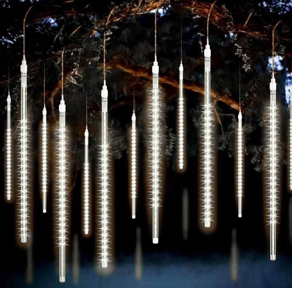 Külm valge, 10 purikat, pulkade vahe 20cm, liikuv valgus. Toitekaabli pikkus 5m, IP44, sise- ja välistingimustesse.