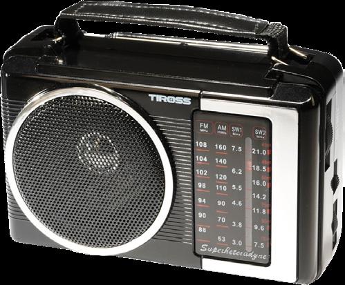 Raadio Tiross TS-460 FM/AM/SW, kõrvaklapi pesa, töötab vooluvõrgust AC/ DC kui ka 2xLR20 patareidel (pole kaasas), mõõt: 9,5x16x5,5cm.