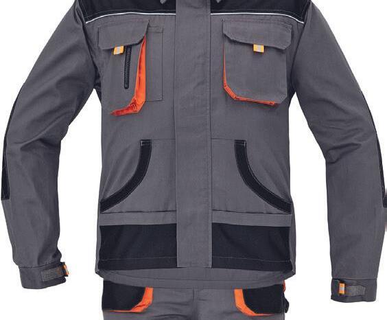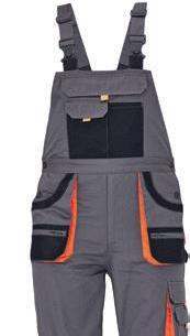 Tugevdatud õlad, küünarnukid, alläär, funktsionaalsed taskud, krõpsuga varrukad, lukuga. 80% puuvill, 20% polüester. Suurused: 48-64