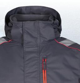 Vee ja tuulekindel 100% polüester, hingav, teibitud õmblused, kõrge kaelus, eemaldatav kapuuts, helkurelemendid, palju taskuid, pikem seljaosa, soe vooder. Suurused: M-XL. 58-12923