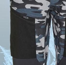 Palju taskuid, topeltkangaga põlveosad, kõrgem seljaosa, peegeldavad elemendid. Värvus: sinine või must, 65% polüester, 35% puuvill. Suurused: 72-100. 58-12189, 58-12188