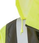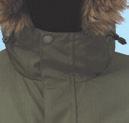 Vee ja tuulekindel 100% polüester, hingav, teibitud õmblused, kõrge kaelus, eemaldatav kapuuts, helkurelemendid, palju taskuid, pikem seljaosa, soe vooder.