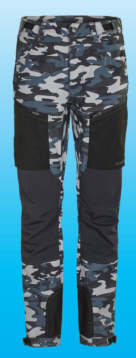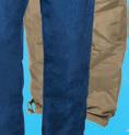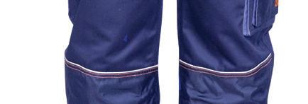 Palju taskuid, topeltkangaga põlveosad, kõrgem seljaosa, peegeldavad elemendid. Värvus: sinine või must, 65% polüester, 35% puuvill. Suurused: 72-100.