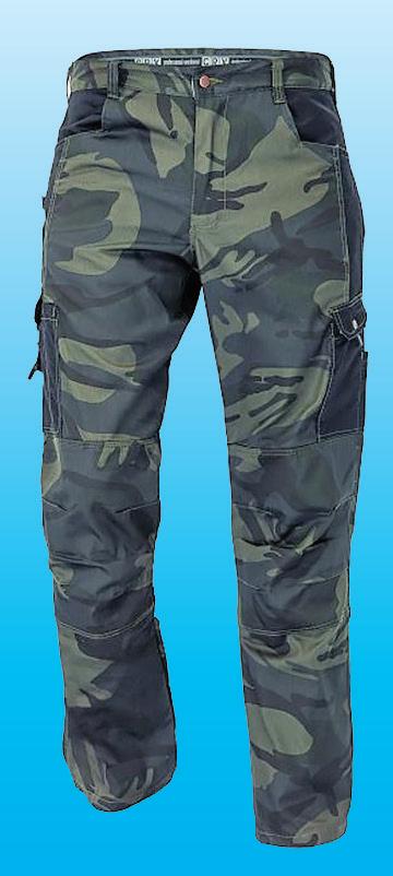 Palju taskuid, topeltkangaga põlveosad, kummiga kõrgem seljaosa, peegeldavad elemendid. Värvus: sinine, must, 65% polüester, 35% puuvill. Suurused: 76-100. 58-12184, 58-12185
