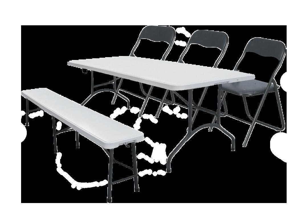 Tuntud kui “Õllelaud”. Laud 180x50cm, kõrgus 75cm. Pink 180x25x46cm. Laual ja pinkidel metalljalad. 96-326768 13999
